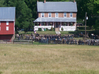 We went to the Gettysburg reenactment this year to celebrate our Fourth of July as a family (we went on the 7th, close enough...right). It was a neat experience and (minus the heat and lack of shade) we really enjoyed ourselves. it wasn't on the actually Gettysburg historical site but a feild they rented off a farmer nearby. I was bummed at first because I thought I would see everything there when we went but as I thought about it, I am glad they do it this way as I think it would take away from the experience and sanctity of the actually site; plus, I wouldn't want to experience the actually site with a crowd as big as this one was. I guess we will just have to go back another time...darn! ;0) There was a nice breeze while we were there which helped with the heat but we still went through 8 bottles of water, 2 lemonades and a rootbeer and got quite burnt, inspite of the sunblock. Thank goodness Tamar loaned us her double stroller, the boys were fine; hot but not burnt. Despite what it sounds like we really enjoyed ourselves and are so happy that we were able to experience this.